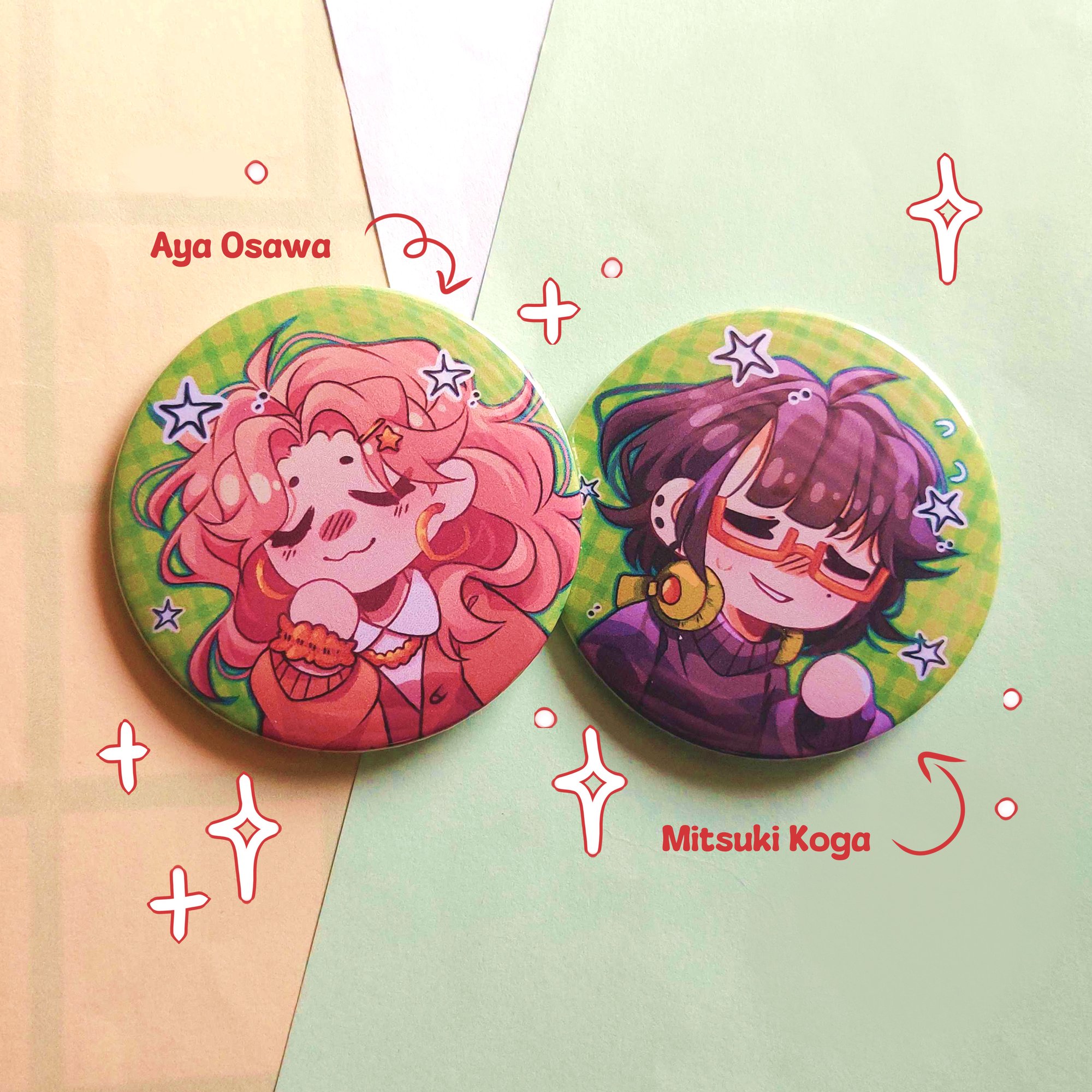 buttonpins, stickers and polaroid from green Yuri!