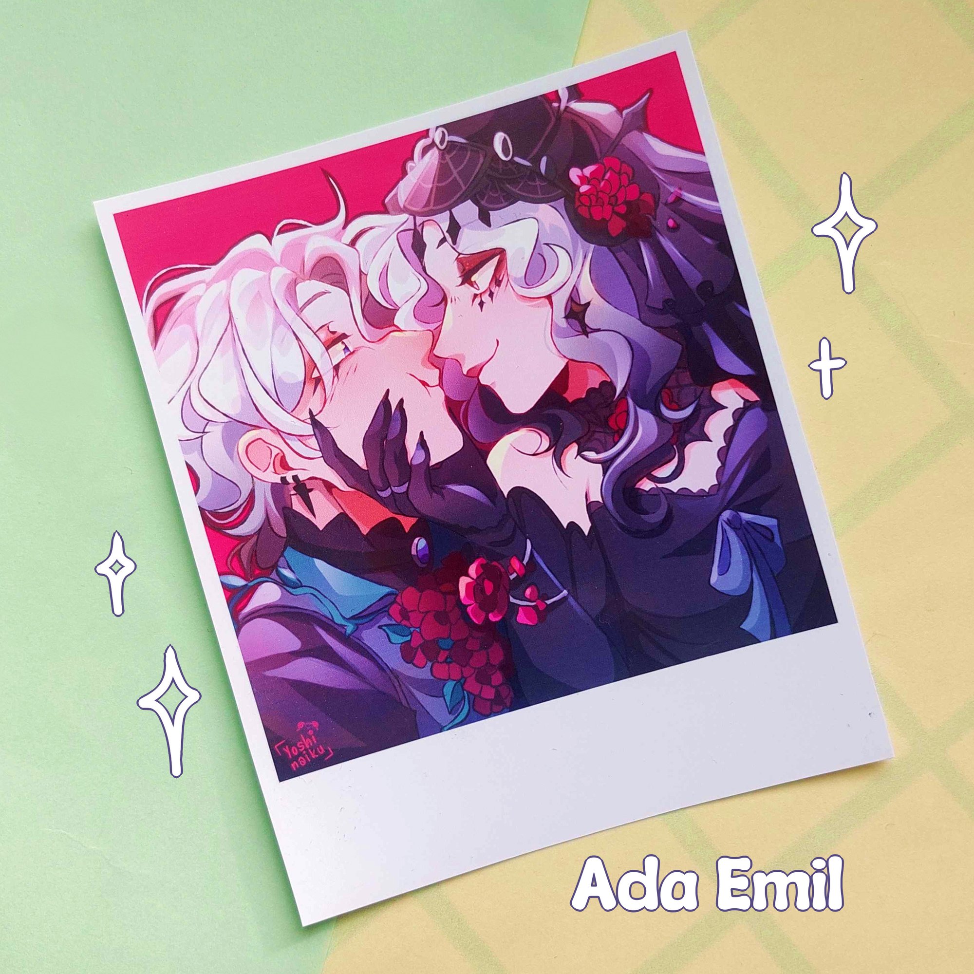 Polaroid print with Ada and Emil, photo paper Size: almost 4x3,5 inch (10,5x9 cm)