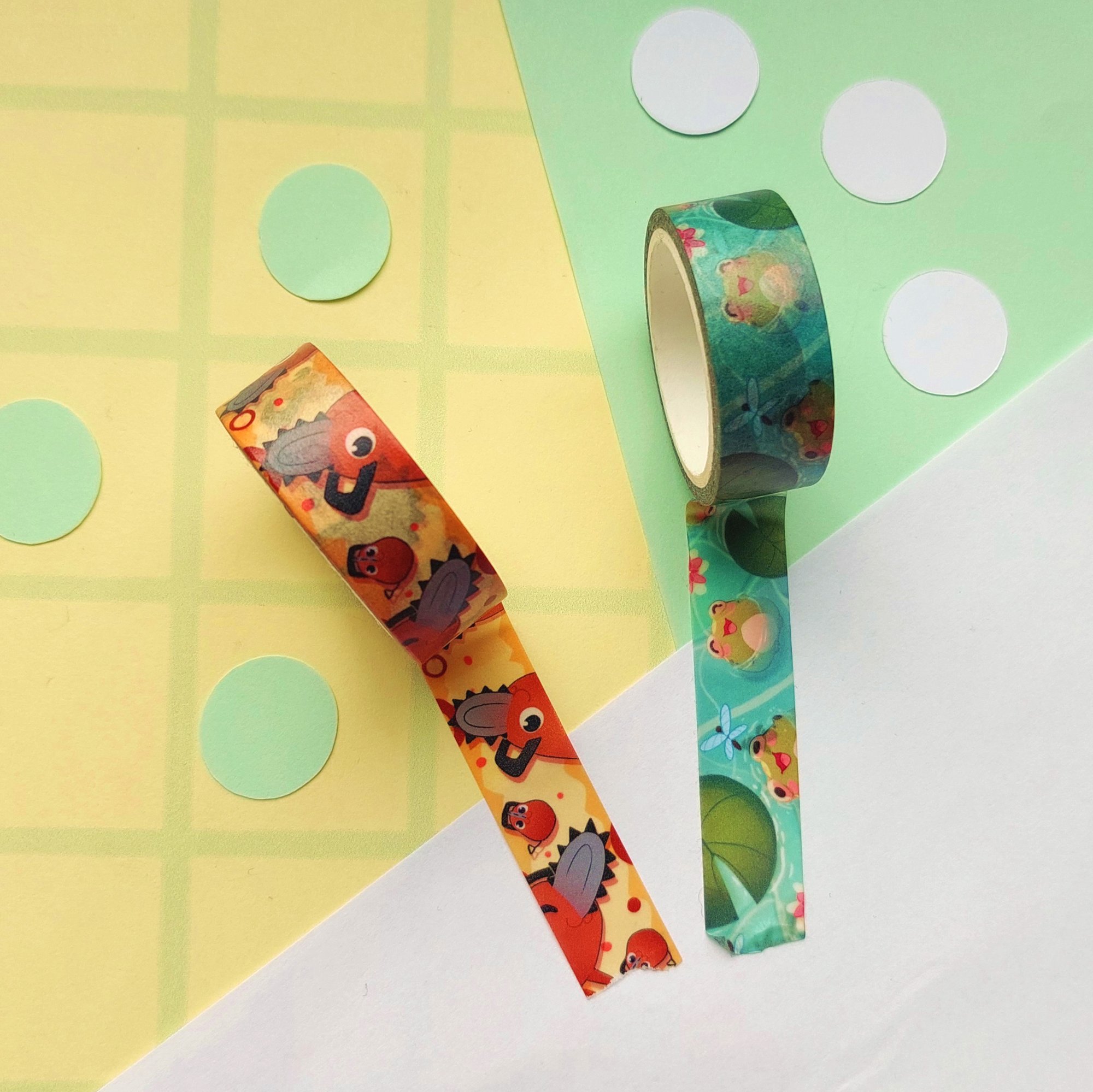 Washi tapes with pochita and froggies, Diameter: 1,5cmx5m